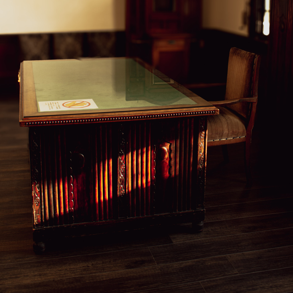 歴史を重ねた柱や床、照明のひとつひとつに趣があり、作業中もこの独特の雰囲気に癒されます。