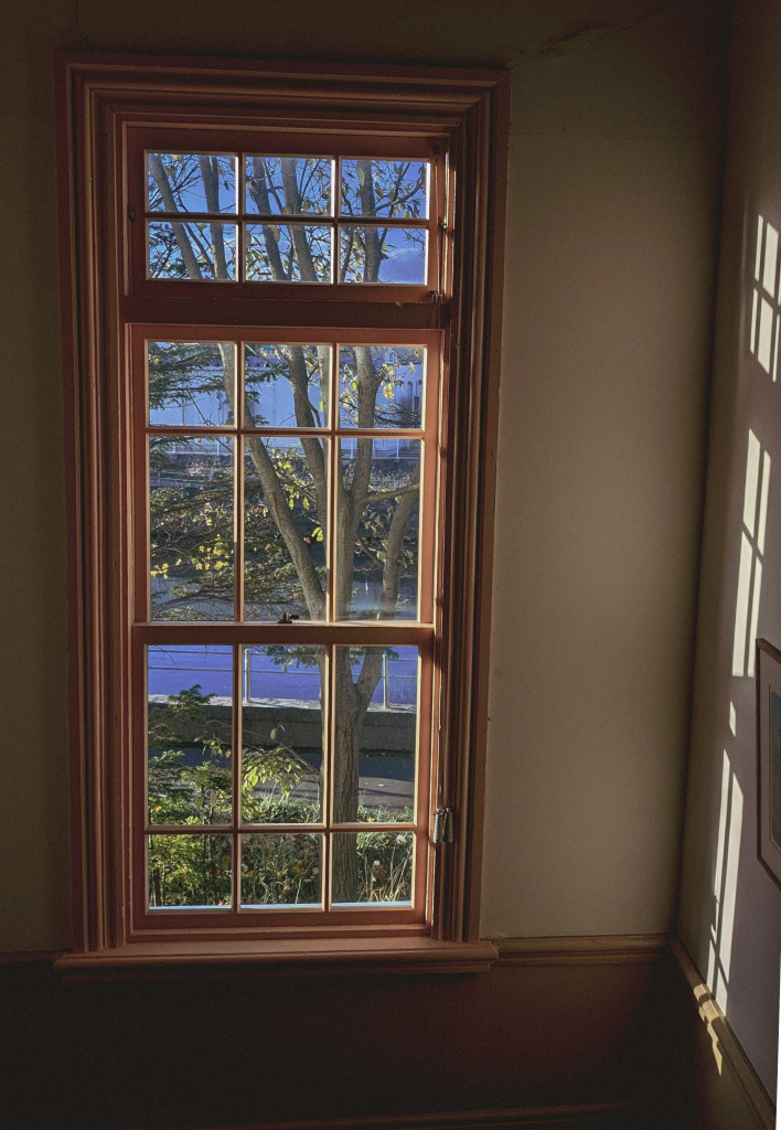 特に、窓から見える景色は格別です。 丁寧に修繕された窓枠ごしに見る木々の緑は、まるで一枚の絵画のようです。